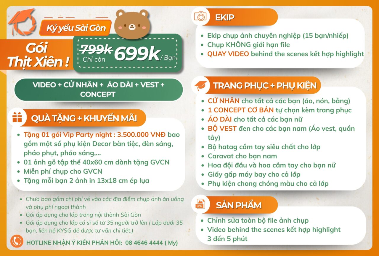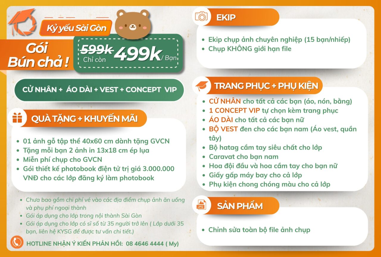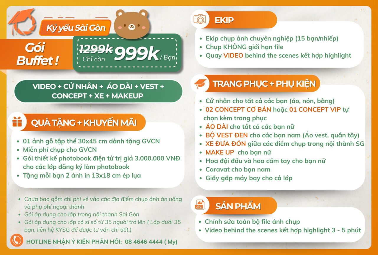 => Liên hệ ngay với Kỷ yếu Sài Gòn qua số điện thoại/ zalo: 08 4646 4444 (gặp Ms. Mỵ) hoặc 0878.968.666 (gặp Ms. Linh) để được tư vấn chi tiết nhennn!????