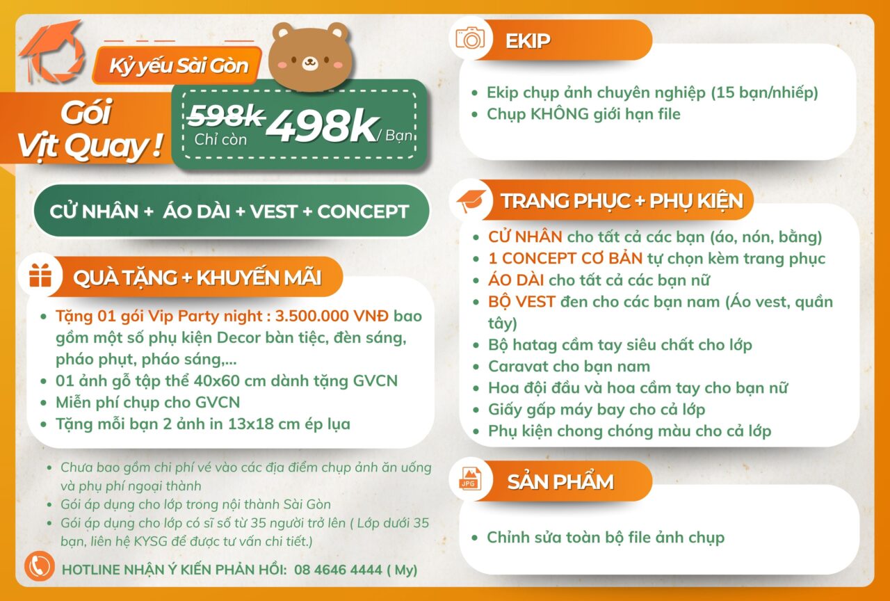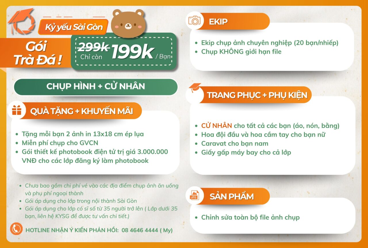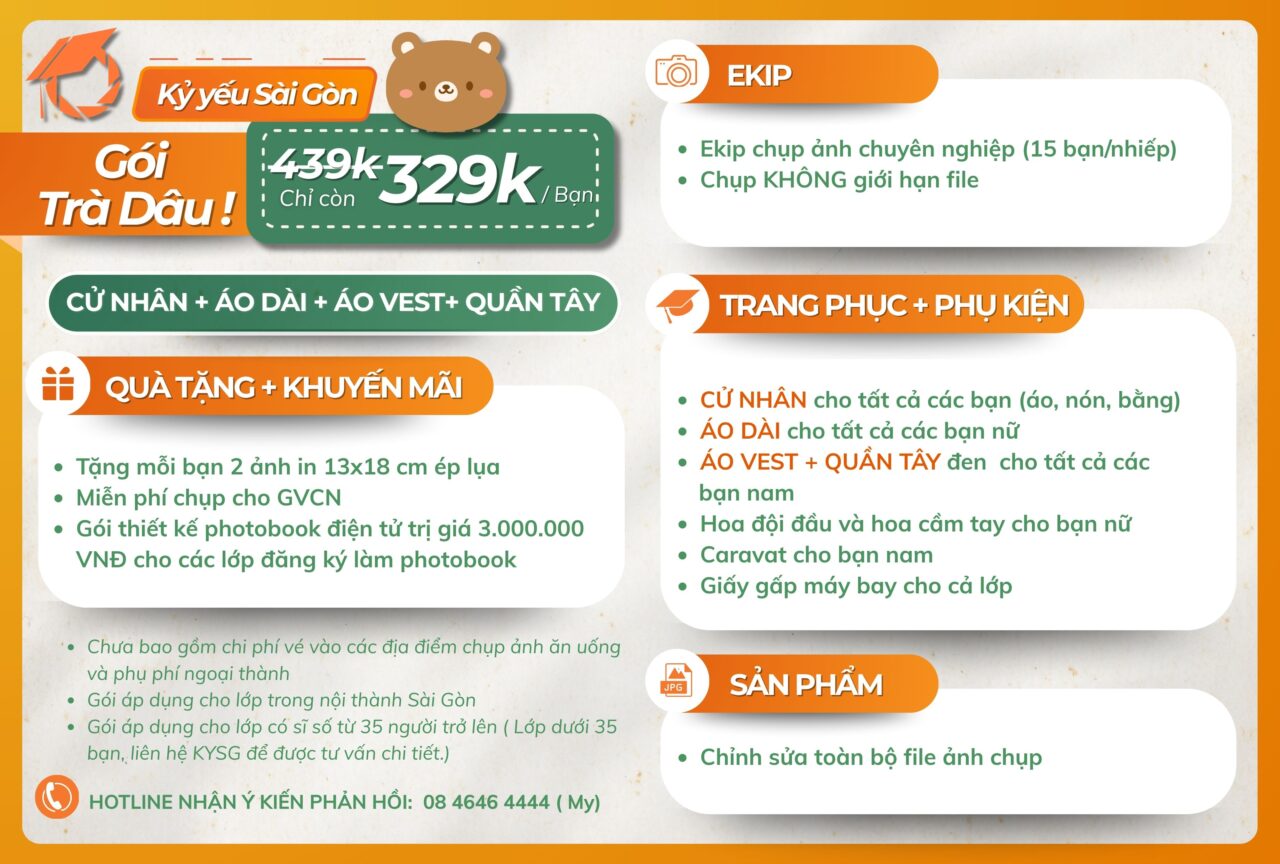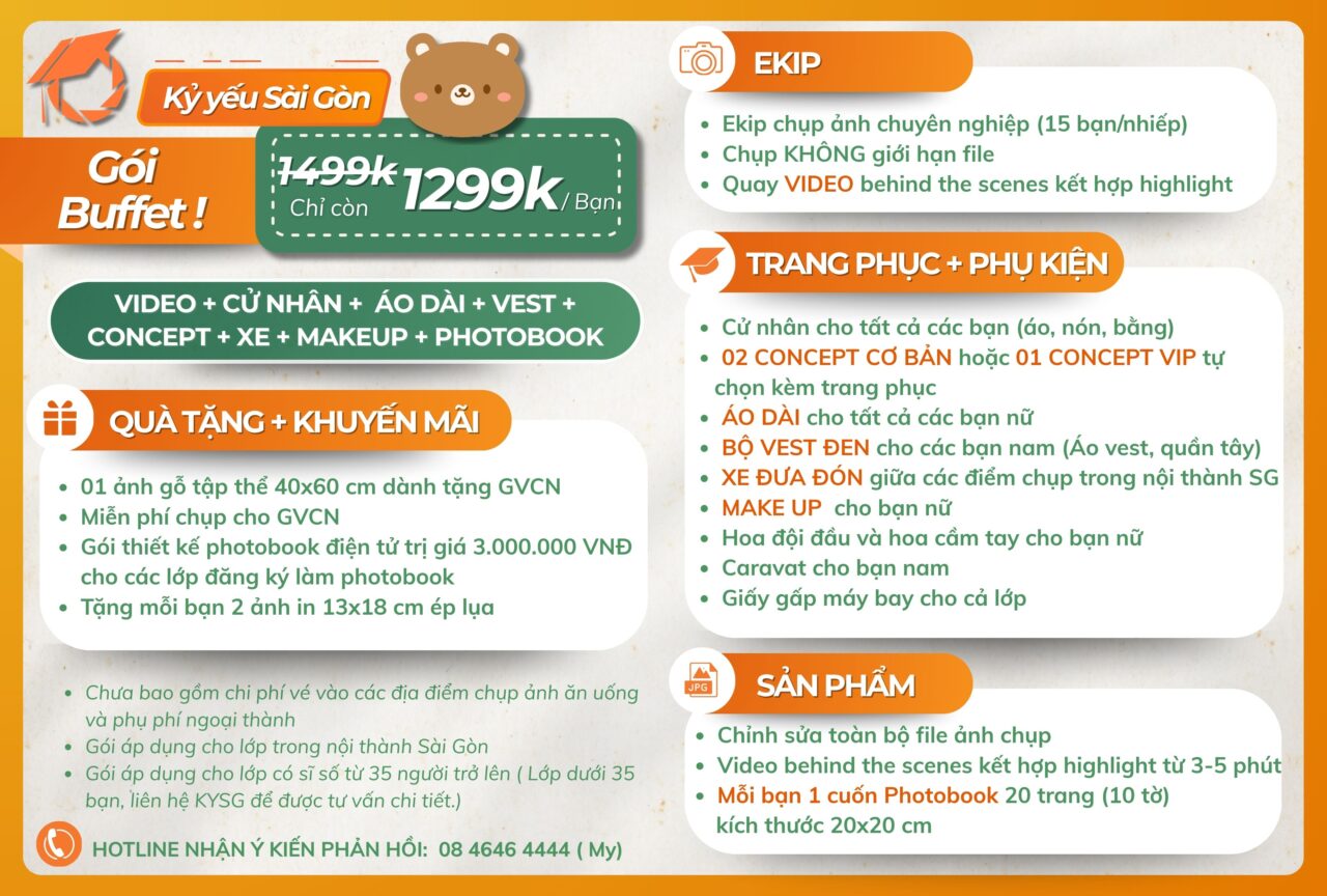 => Liên hệ ngay với Kỷ yếu Sài Gòn qua số điện thoại/ zalo: 08 4646 4444 (gặp Ms. Mỵ) hoặc 0878.968.666 (gặp Ms. Linh) để được tư vấn chi tiết nhennn!????